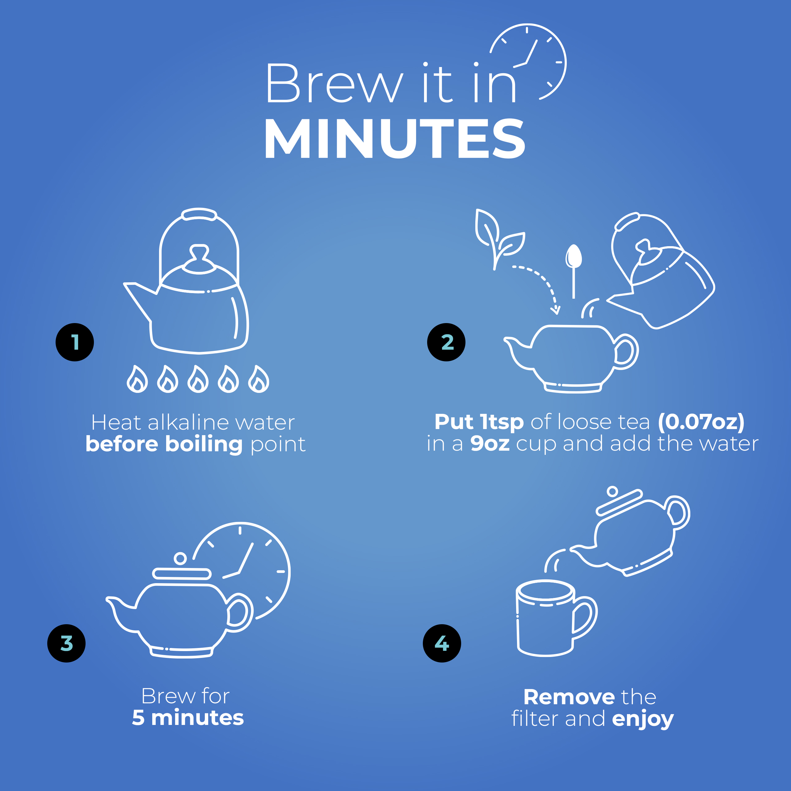 - El tiempo de infusión del té es de 4 minutos.